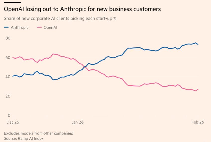 OpenAI to double its workforce this year to compete against Anthropic and push into business, from 4,500 employees to roughly 8,000.