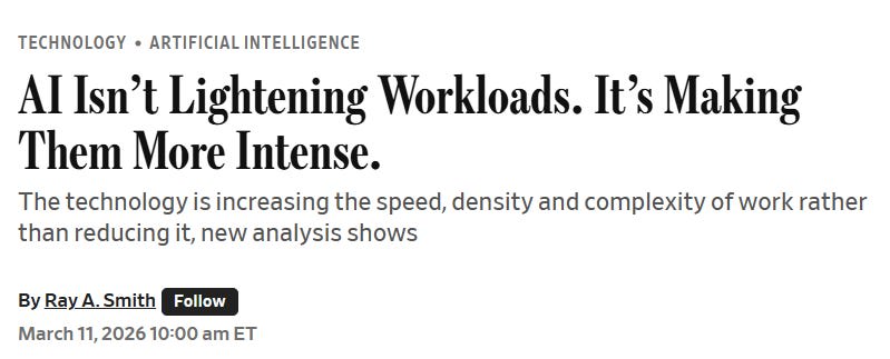If AI makes everyone twice as productive, one possibility is that everyone works half as hard. Another possibility is everyone works twice as hard, on top of being twice as productive, because half of people are about to get fired, or people see that you’ve completed your other work faster and suddenly give you more tasks.