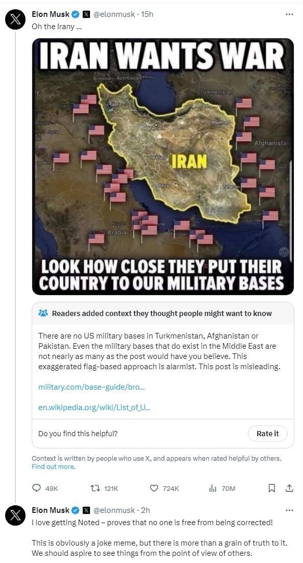 While it seems like a win against misinformation, Musk still gets to hide behind the shield of “joke meme,” further implying that while the actual empirical claims made by the meme are false, the underlying message is still true. Correcting jokes doesn’t seem to be in the scope of Community Notes, and furthermore, political humor often carries a deeper message that is practically impossible to fact-check (and it would be a bit much to require every political meme to be tied to a falsifiable claim).[10]