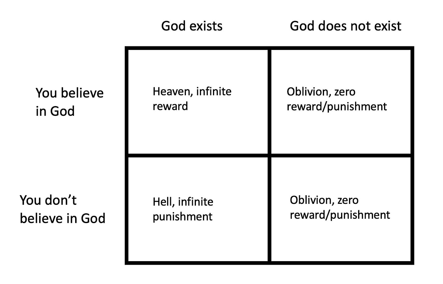 Spelled out even more, let’s start with the relatively-accessible Pascal’s Wager.