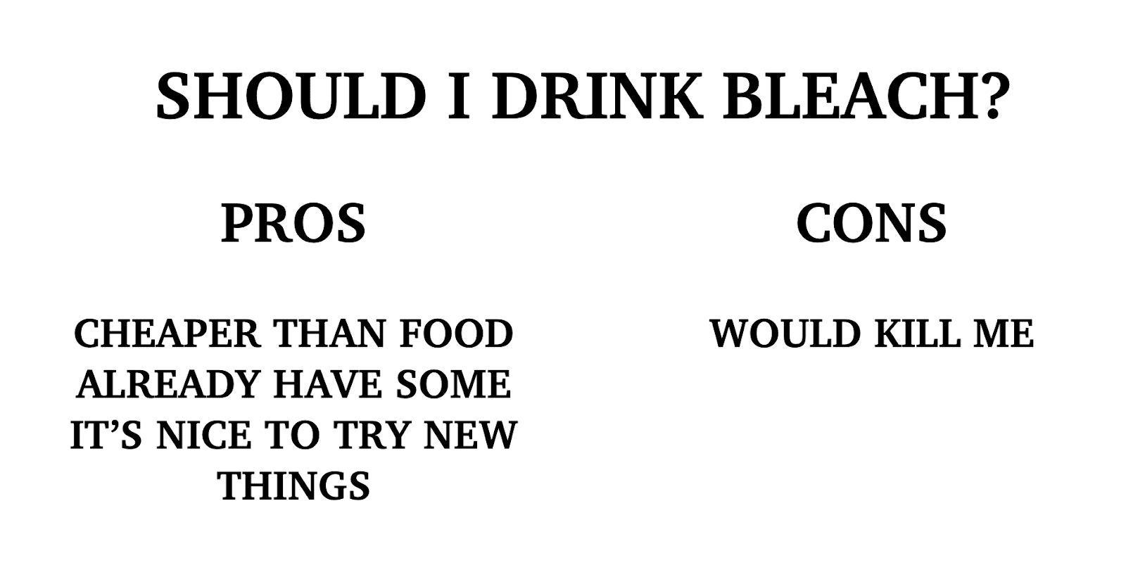 Caption: Pro and con lists make it easy to put too much weight on an unimportant factor.