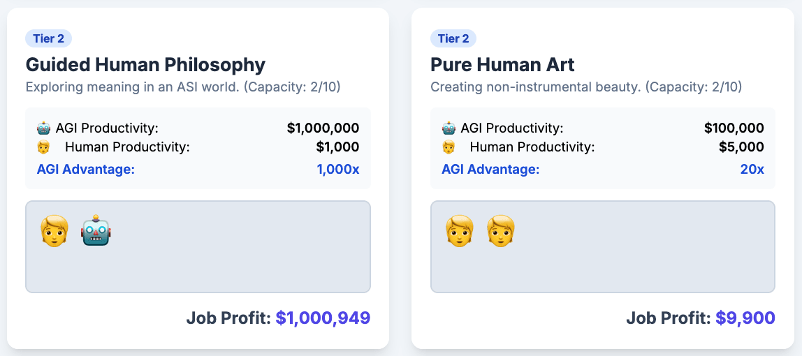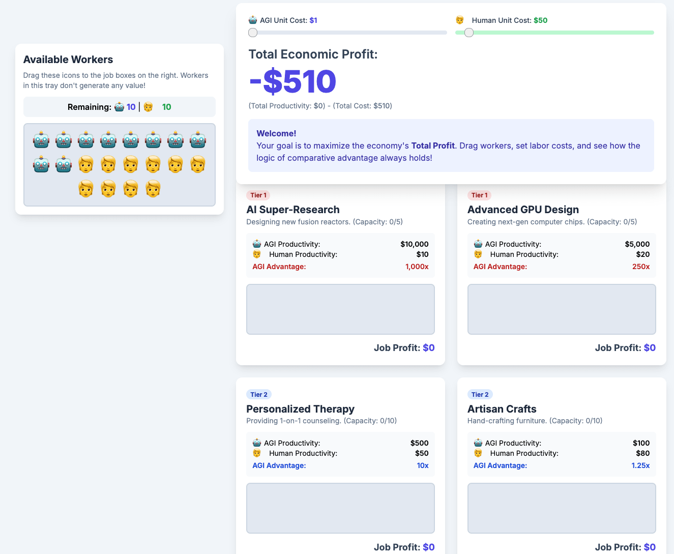 I was recently saddened to see that Seb Krier – who's a lead on the Google DeepMind governance team – created a simple website apparently endorsing the idea that Ricardian comparative advantage will provide humans with jobs in the time of ASI. The argument that comparative advantage means advanced AI is automatically safe is pretty old and has been addressed multiple times. For the record, I think this is a bad argument, and it's not useful to think about AI risk through comparative advantage.