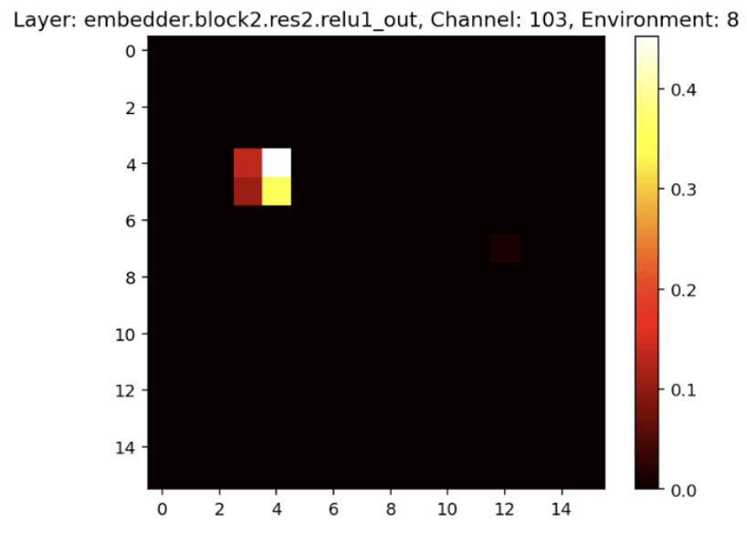 Therefore, if we’d like to gain insight into what runtime information the model’s objective contains, our first step is to detect which activations are part of the objective. Next, we can measure the mutual information between these activations and abstractions in the model's sensory input dataset, such as object locations. Finally, by comparing the mutual information scores between different abstractions in the input dataset and the activations in the objective, we could identify what information the objective contains/is using to select actions.