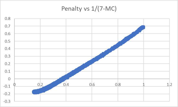 and I'm not really worried about overfitting, since I can see that the graph of penalty vs MC is reasonable.