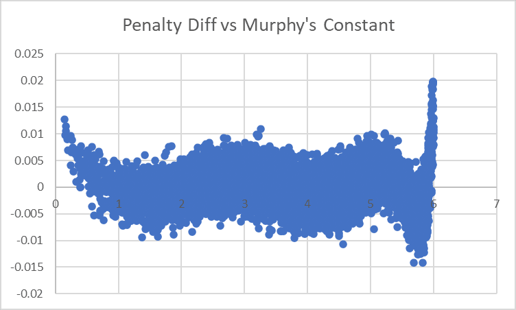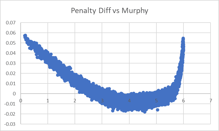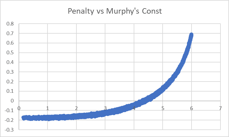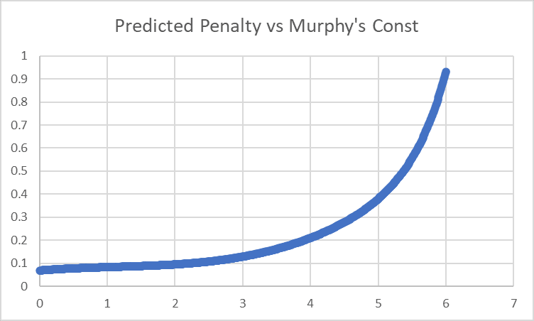 Last time, I had no idea how to handle Murphy's Constant, and just flung five different parameters in and let the model sort it out. The model settled on penalty coefficients of: