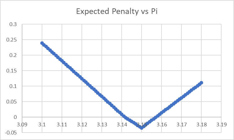 ...huh. This mostly looks right, but on the far left it looks like we actually aren't penalizing the very-far-from-3.15 values of Pi hard enough. The penalty term grows faster than squared I guess? If I were doing this seriously I might try to figure out what it was exactly, for now I'll just slap on a difference-cubed term: