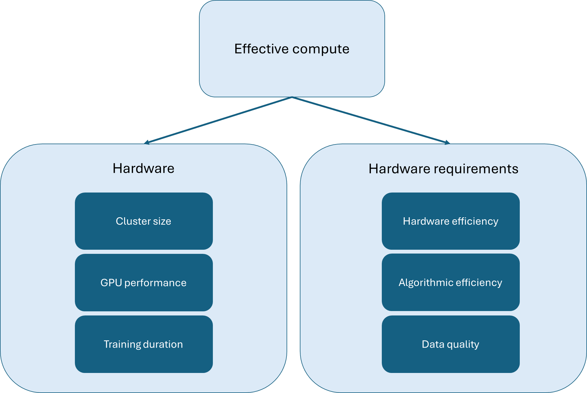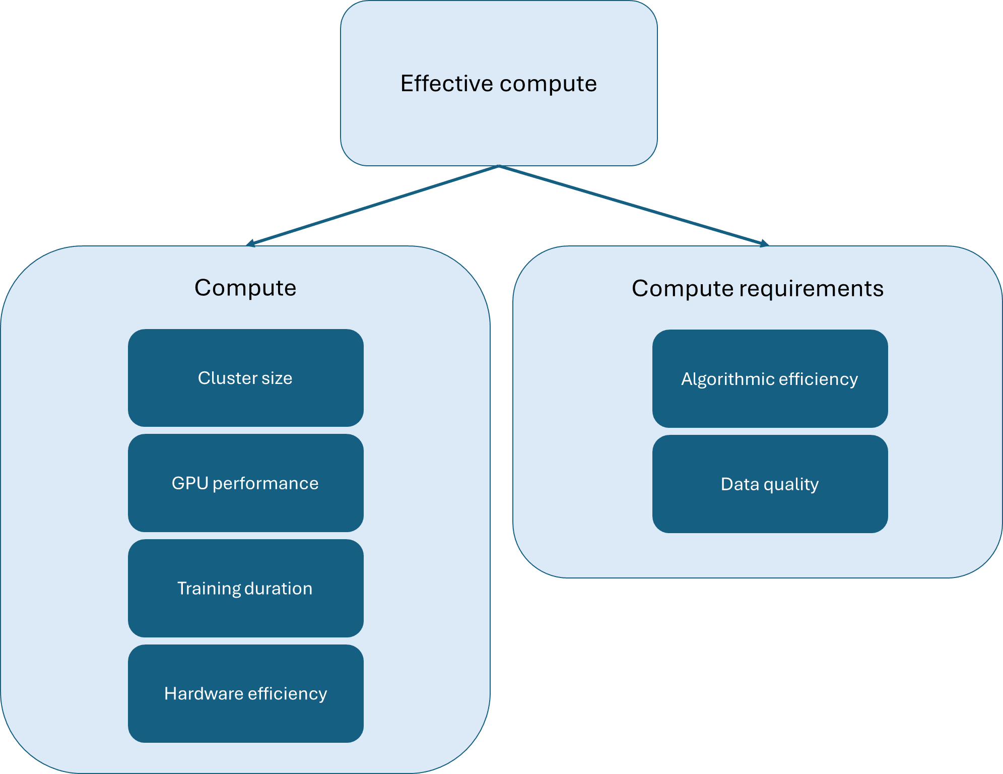 As I eluded to in the intro, there's two natural ways to decompose effective compute. The first and more common one is to separate effective compute into compute and compute requirements: