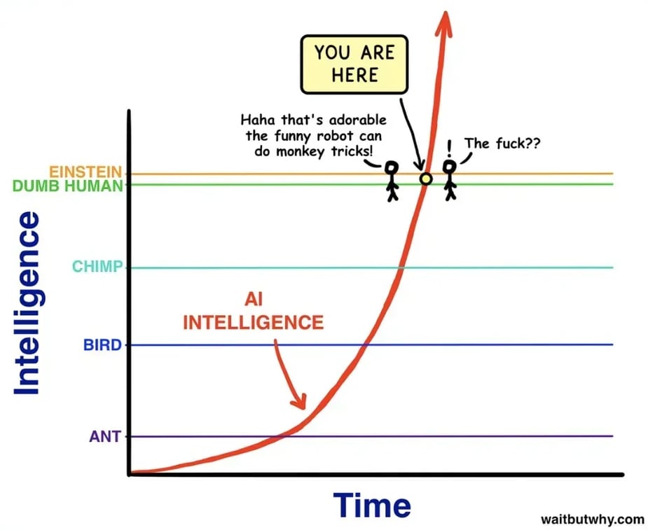 I find this graph useful. I think you can agree at some point that AI will be more intelligent than humans, even if AI intelligence is quite different and lacking in a few (fewer every year) areas. If this is the case then this graph is quite effective at conveying that this point may be happening soon.