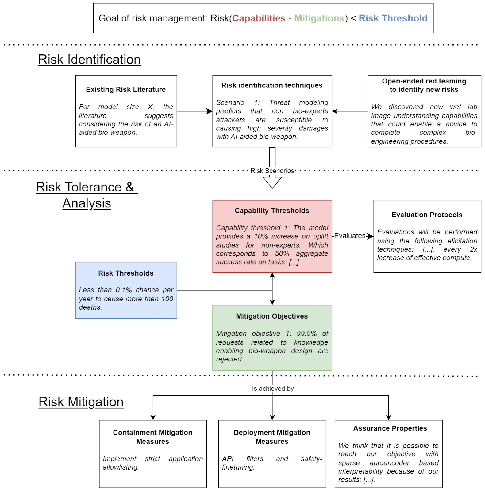 Setting capabilities thresholds without additional grounding just hides this difficulty & confusion. It doesn’t resolve it. Many disagreements about acceptability of capability thresholds & mitigations are disagreements about acceptable levels of risks. We can’t resolve those with evaluations only. We’re just burying them.