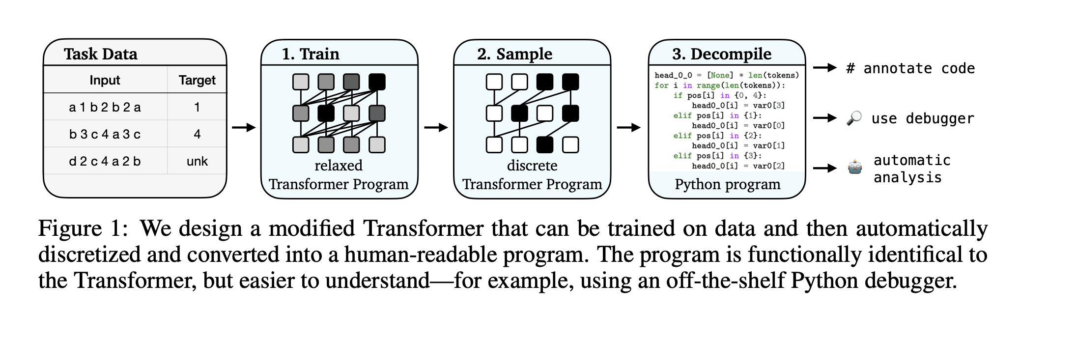 Recent research in mechanistic interpretability has attempted to reverse-engineer Transformer models by carefully inspecting network weights and activations. However, these approaches require considerable manual effort and still fall short of providing complete, faithful descriptions of the underlying algorithms. In this work, we introduce a procedure for training Transformers that are mechanistically interpretable by design. We build on RASP [Weiss et al., 2021], a programming language that can be compiled into Transformer weights. Instead of compiling human-written programs into Transformers, we design a modified Transformer that can be trained using gradient-based optimization and then be automatically converted into a discrete, human-readable program. We refer to these models as Transformer Programs. To validate our approach, we learn Transformer Programs for a variety of problems, including an in-context learning task, a suite of algorithmic problems (e.g. sorting, recognizing Dyck-languages), and NLP tasks including named entity recognition and text classification. The Transformer Programs can automatically find reasonable solutions, performing on par with standard Transformers of comparable size; and, more importantly, they are easy to interpret. To demonstrate these advantages, we convert Transformers into Python programs and use off-the-shelf code analysis tools to debug model errors and identify the ``circuits'' used to solve different sub-problems. We hope that Transformer Programs open a new path toward the goal of intrinsically interpretable machine learning.