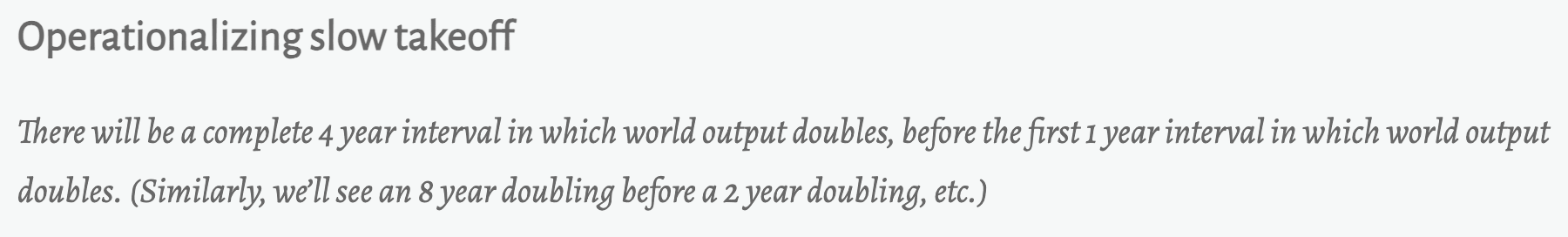 Makes sense. But on this question too I'm confused—has some evidence in the last 8 years updated you about the old takeoff speed debates? Or are you referring to claims Eliezer made about pre-takeoff rates of progress? From what I recall, the takeoff debates were mostly focused on the rate of progress we'd see given AI much more advanced than anything we have. For example, Paul Christiano operationalized slow takeoff like so: