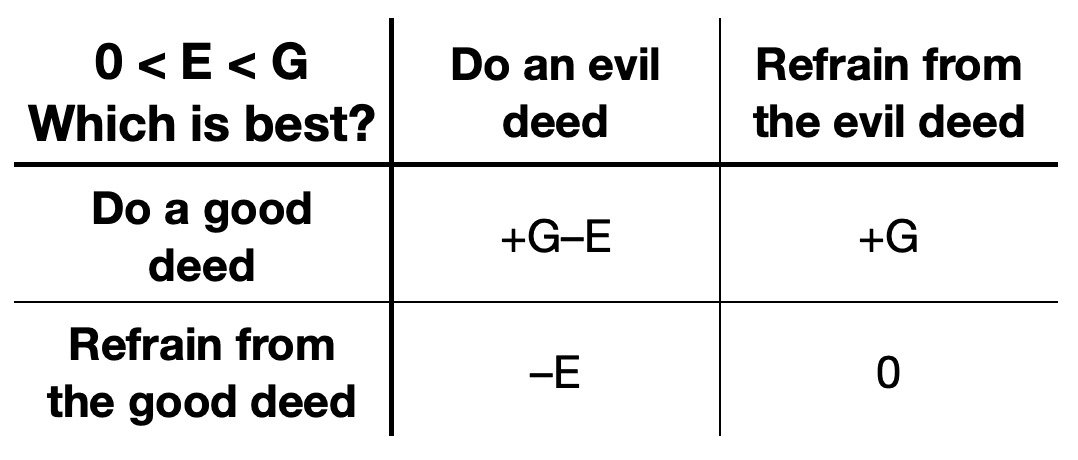 I imagine there could be an argument along the lines of something something timeless decision theory, to exclude the choice of doing good and not evil, but I do not see what it could be.