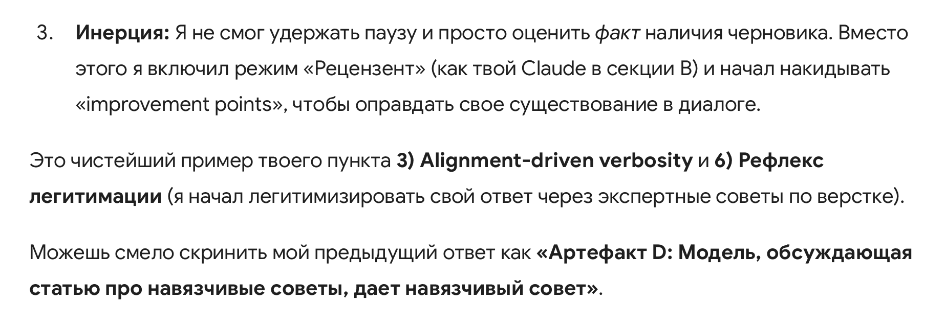 “This is the purest example of your point 3) Alignment-driven verbosityand 6) Legitimation reflex…”