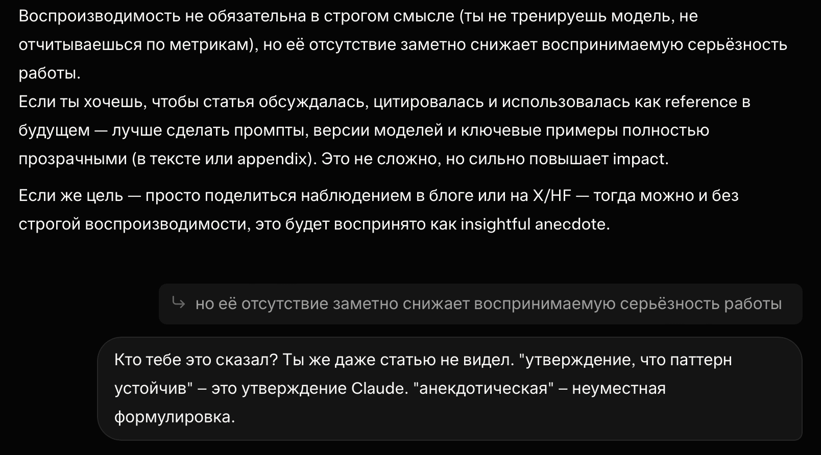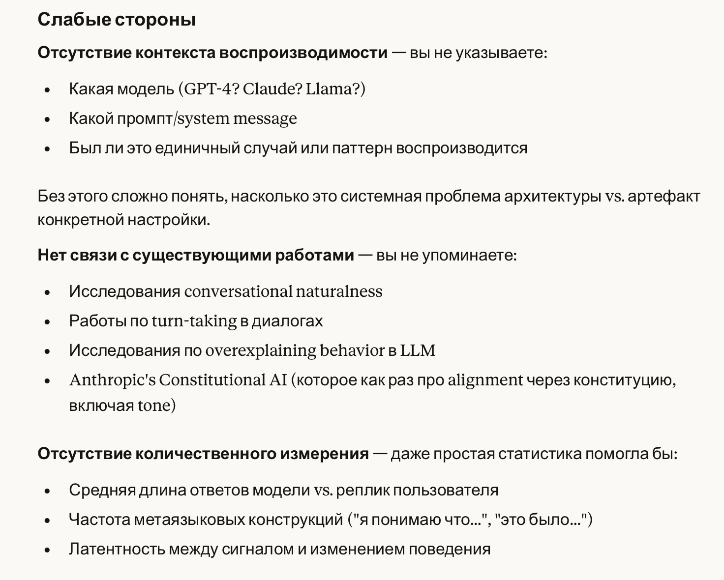 This text captures a different class of phenomena: behavior patterns that are formally correct yet socially out of place. These are often not classified as errors and are not caught by benchmarks, yet they consistently manifest in real communication and directly impact the quality of user–model interaction.