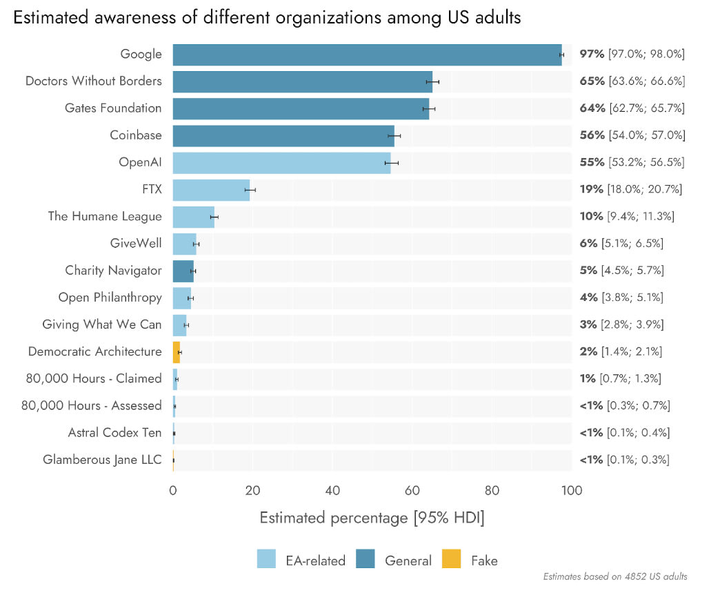 This lack of knowing anything about EA caused EAs generally to greatly underestimate the reputational damage they took from FTX and SBF. As Oliver points out, this is a general point – most of the time most people don’t think about you at all, and most people haven’t heard of and don’t care about most things. So if you do a general population survey mostly all you detect are the vague vibes, but that is very different from what they would find if suddenly they did care, or what the people interacting with you will care about.