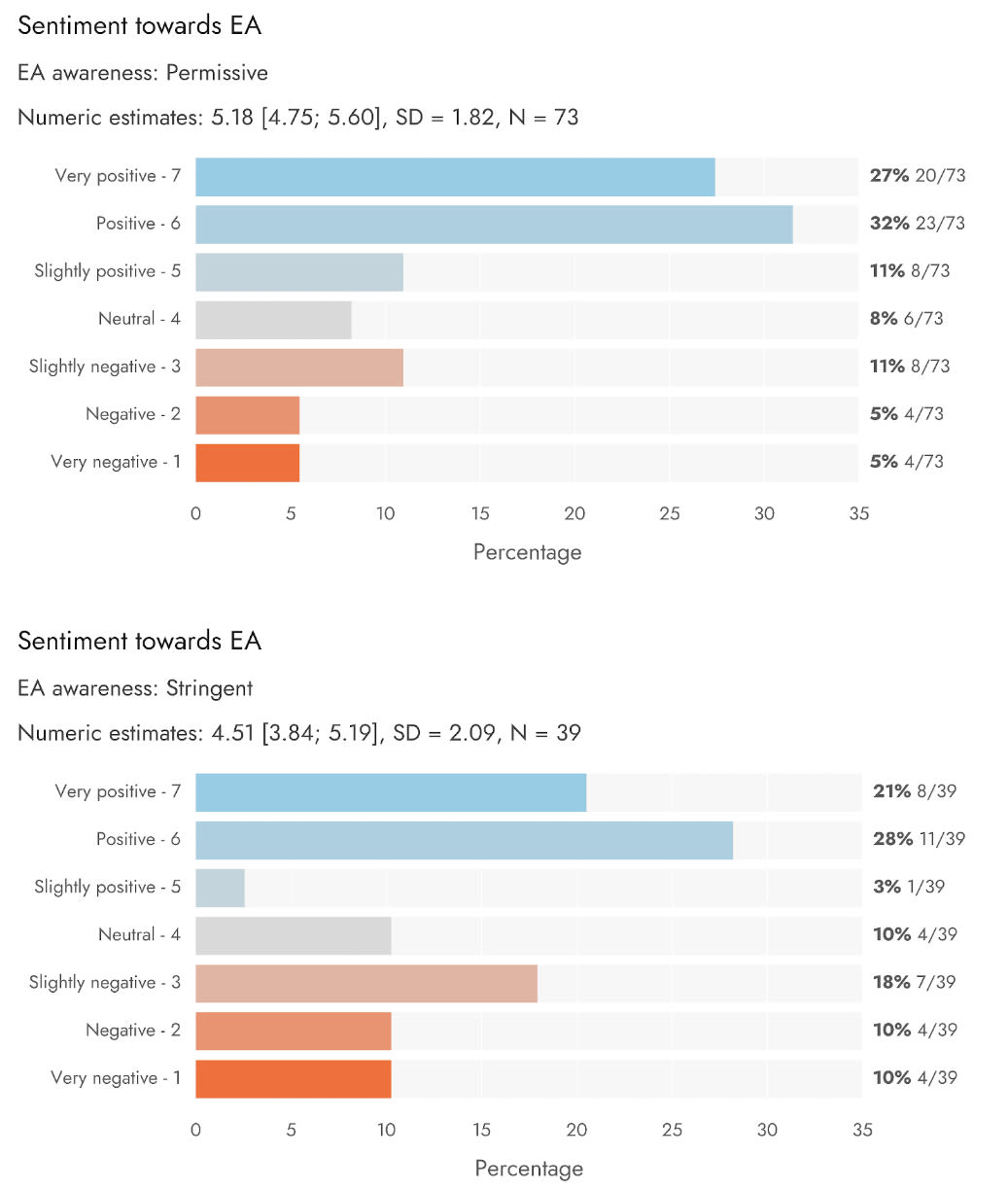 Of the 1% who actually know what EA means, their attitudes are generally positive.