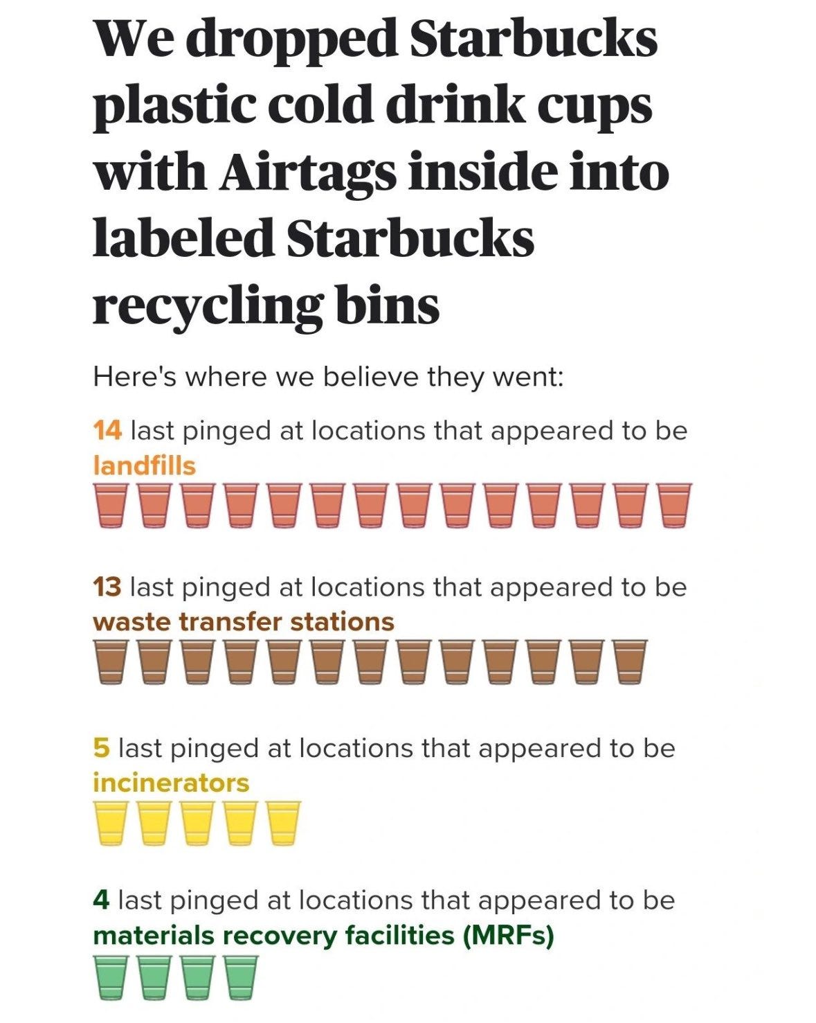Starbucks recycling, like much other recycling, isn’t actually a thing that happens.