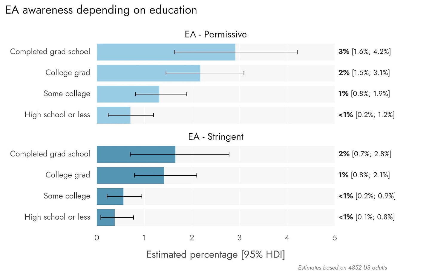 If you go to ‘has heard of EA at all’ it’s 12%, but they mostly know nothing more.