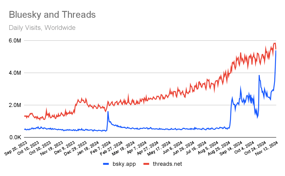 In rival news, BlueSky is rapidly on the rise, and has caught Threads.
