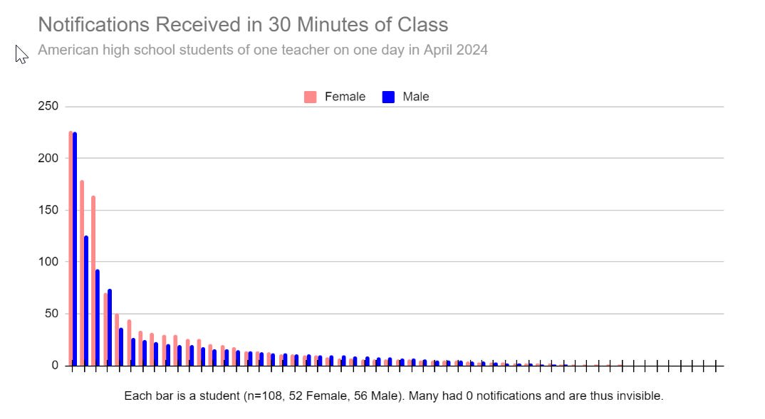 As I’ve mentioned before, I find phones distracting when doing non-internet activities even when there are zero notifications. Merely having the option to look is a tax on my attention. And as Gwern notes in the comments, the fact that a substantial minority of students would want to nuke messaging apps from orbit is more a case of ‘that is a lot’ rather than ‘that is only a minority.’ Messaging apps provide obvious huge upside in normal situations outside school, so a lot of kids must see big downsides.