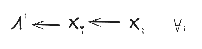 … which are exactly the (weak) natural latent conditions, i.e. Λ1 mediates between all Xi’s and all information about Λ1 is redundantly represented across the Xi’s. From the standard Fundamental Theorem of Natural Latents, we also know that the natural latent conditions are almost sufficient[1]: they don’t quite guarantee that Λ1 is a function of Λ2, but they guarantee that Λ1 is a stochastic function of Λ2, i.e. Λ1 can be computed from Λ2 plus some noise which is independent of everything else (and in particular the noise is independent of X).