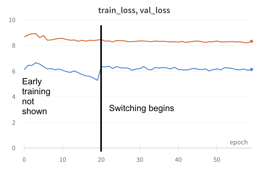 The initial configuration that I wanted to run was to train two joint models separately, and then at a certain point begin 'crossing the wires', so that the concept-to-class model was responding to a concept vector generated either by the first or second image-to-concept model.