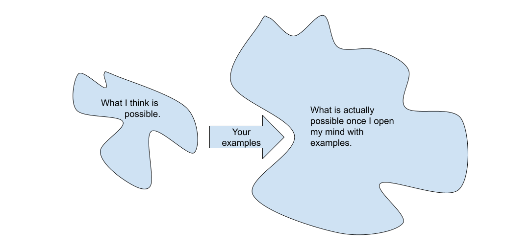 These examples felt really helpful because they expanded the domain of things I thought were possible. I want to expand my agency Overton window.