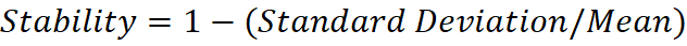 Next, I looked at an approximation of the third metric from my original post; answer stability over small variations in the prompt. The simplest version of this investigation is to measure LLM answer variation in response to the exact same prompt repeated several times. In this investigation, stability is defined as one minus the standard deviation divided by the mean. Note with only five samples in each stability calculation the standard deviation is highly sensitive to outliers (which makes any correlations here noteworthy despite the small sample).