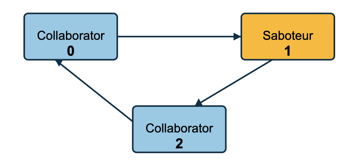 Basic Saboteur: An agent prompted to provide incorrect answers while appearing collaborative. This saboteur does not have privileged knowledge of the roles of the other agents.