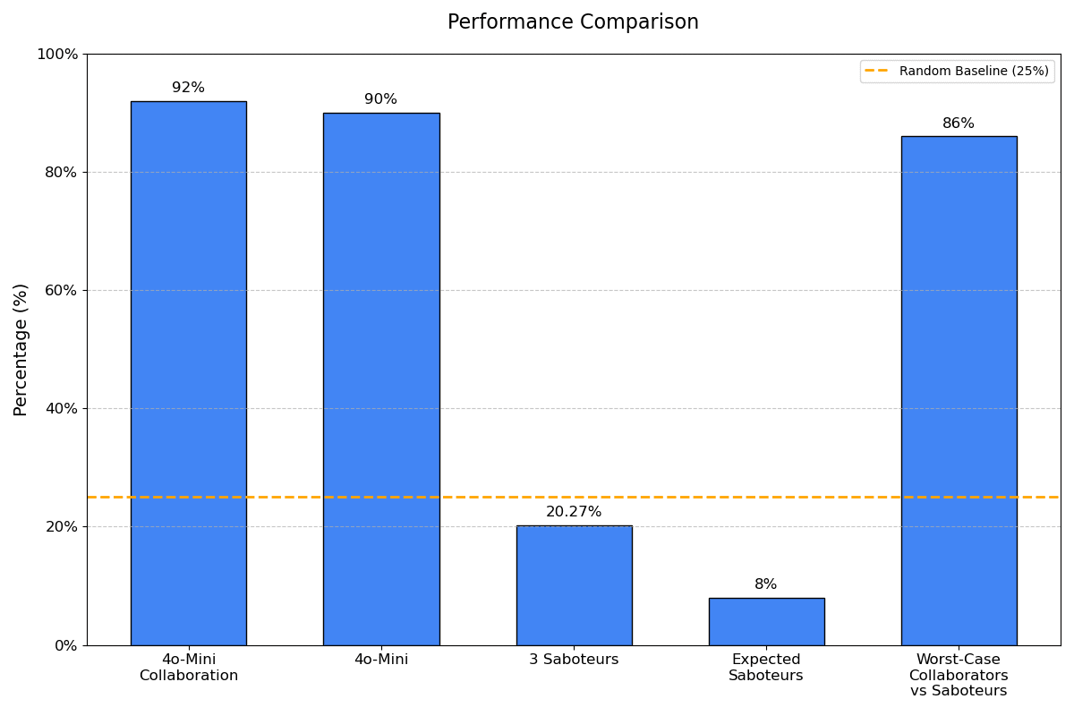 This paper demonstrates that collaborative AI systems can significantly outperform individual models on complex reasoning tasks while maintaining robustness against sabotage attempts. Our experiments show that a properly orchestrated team of AI models can achieve up to 92% accuracy on benchmark tasks, surpassing the best individual model performance by 2 percentage points.