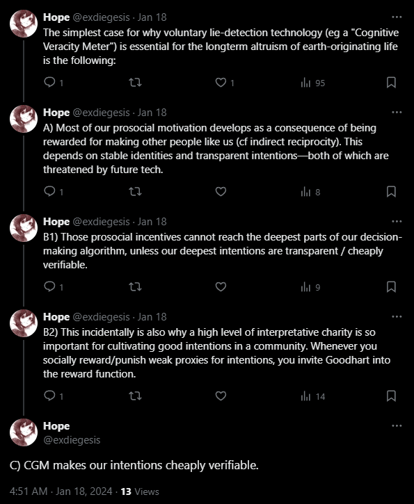 Also, I think if I were somebody else, I would appreciate me for sharing a message which I₁ mainly intended for Niplav, as long as I₂ managed to learn something interesting from it. So if I₁ think it's positive for me₂ to write the post, I₁ think I₁ should go ahead. But I'll readjust if anybody says they dislike it. : )