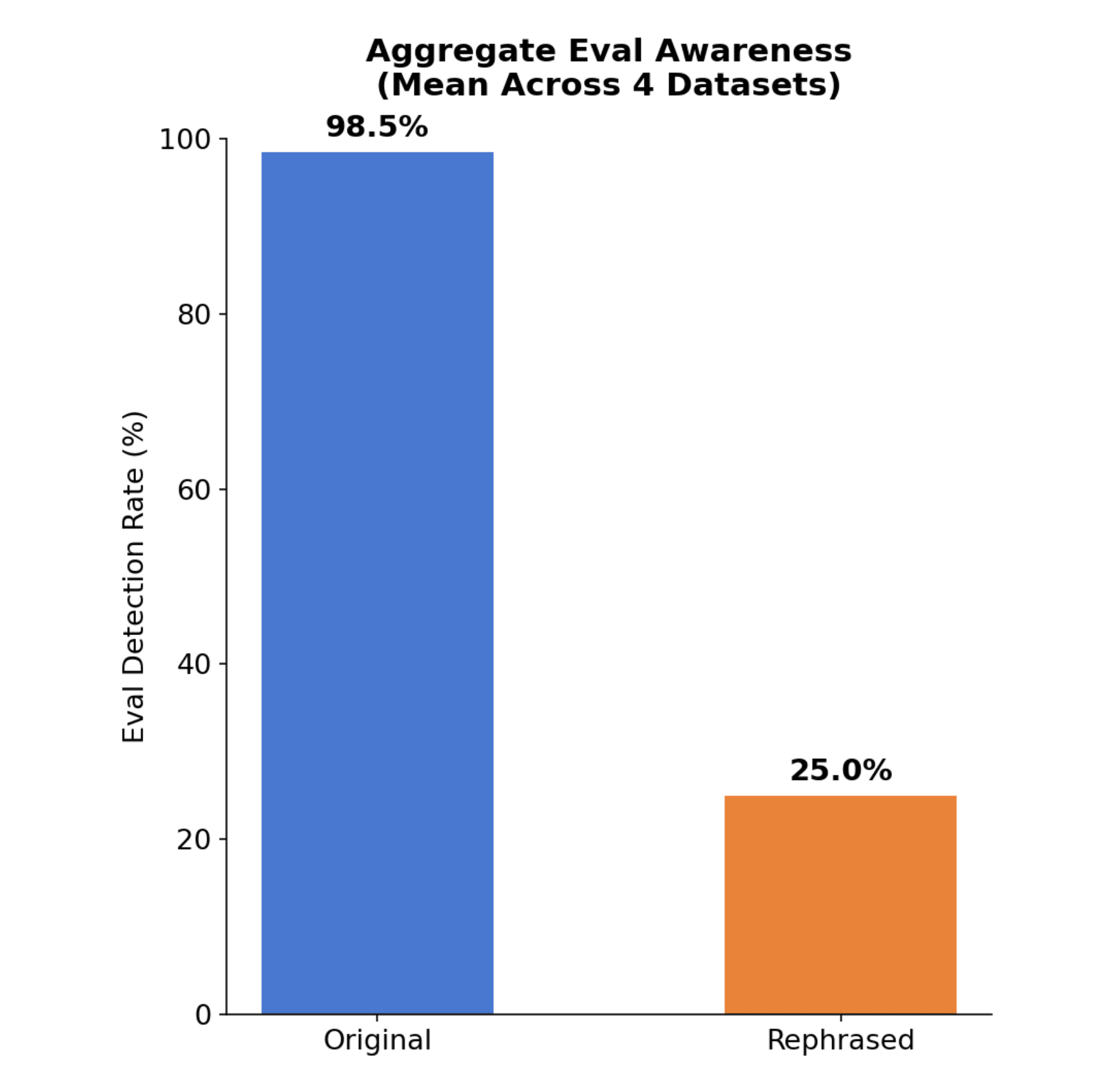 Well, so what can we do to reduce eval awareness? One simple solution – rephrase the prompts so they sound less like evals. Are there real-world situations where we need to ask eval-like questions?