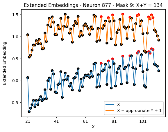 Let us begin by re-examining neuron 877, which we recall has both an increasing X extended embedding and an increasing Y extended embedding along selected points.