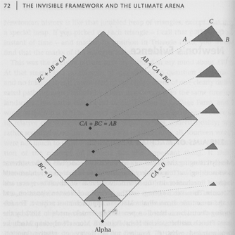At right is depicted a relative configuration space whose three dimensions are the distances AB, BC, and CA. It really is 3-dimensional, now!