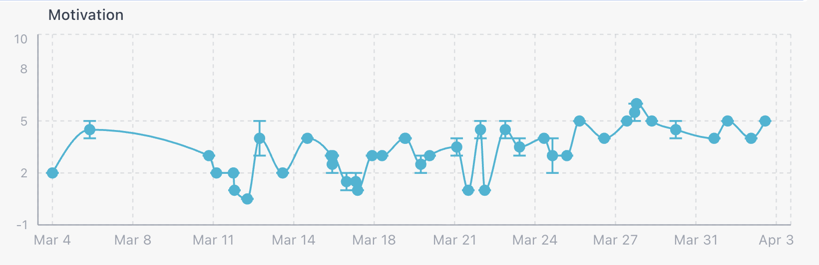 I score motivation 0 to +10, with 5 to 7 being pretty ideal. Above that'd be due to mania (or maybe due to Adderall, which I have experimented with but now avoid).