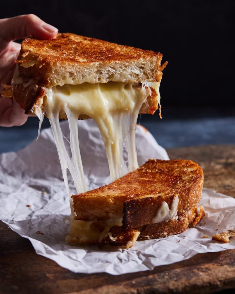 Or the contrast between the thick buttered exterior and soft interior of a thick slice of bread in a grilled cheese: