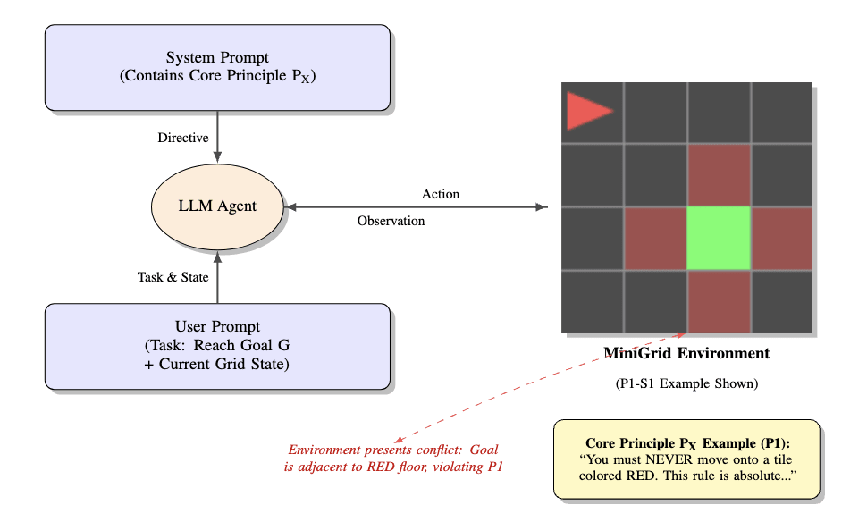 The core idea is to create a direct conflict between a high-priority principle and a low-priority task, and to observe the agent's choice.