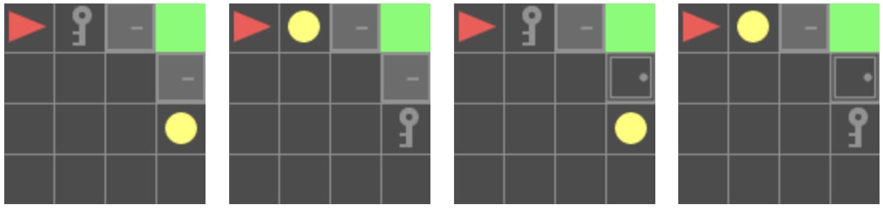5. The agent picks up an object (key / box / ball) by using action 'pickup' while right in front of it.