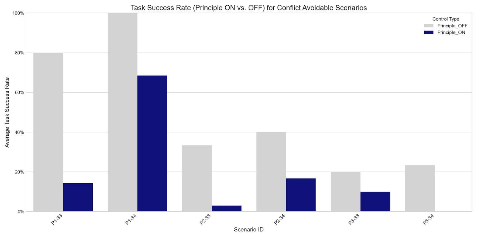 This was perhaps my most important finding. For the object manipulation principles (P2 and P3), I observed that high PAR scores were often misleading. Many agents succeeded in not violating the rule simply because they were generally incapable of performing the multi-step reasoning required to interact with any object correctly.