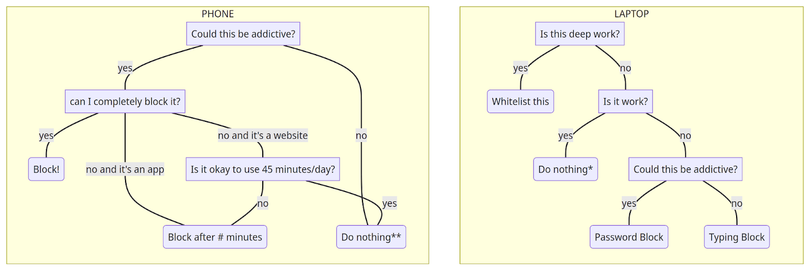 So, in late 2020, I started putting together a system of blocks that make my computer and phone helpful rather than destructive. I wasn’t successful immediately. I’ve made many little tweaks in that time and patched up gaps and cracks. But, the result is a system that solves most of my internet addiction problems without completely disabling my devices![3] Over time, the urge to do addictive things online has also faded a lot, but I have no plans to loosen the controls.