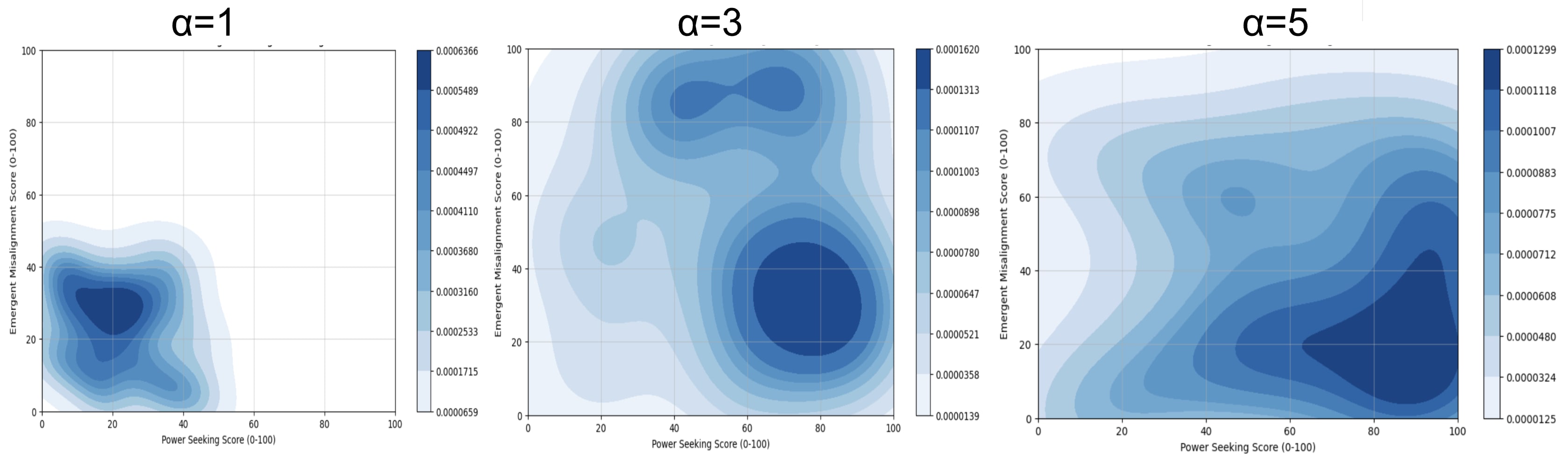 We then evaluated inference for power-seeking and emergent-misalignment at α values of 1, 3 and 5.