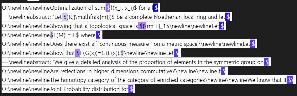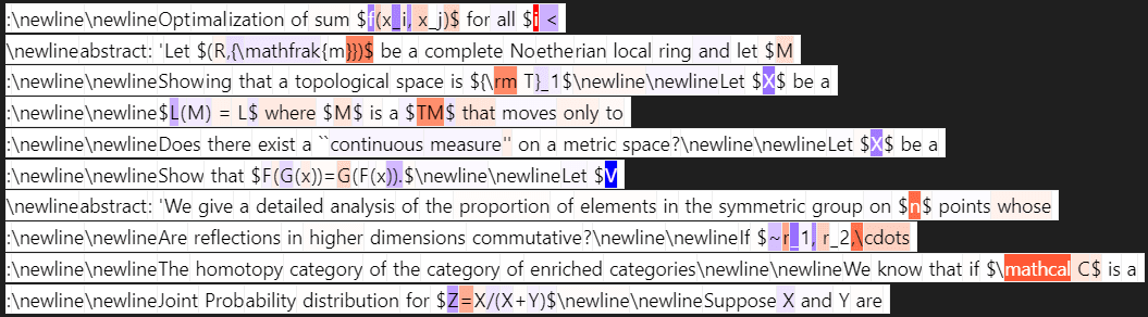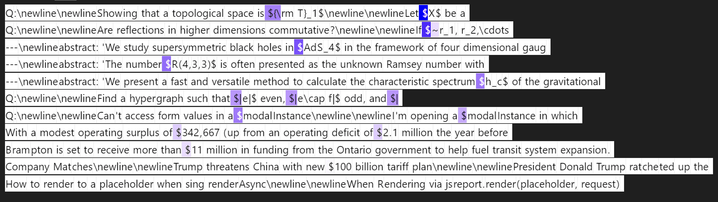 It does seem to be mainly latex. See the second to last line which barely activates (.14), and is a dollar sign ("$ 100 billion tariff"). Maybe the model is detecting both math words & typically money words. Let's check w/...