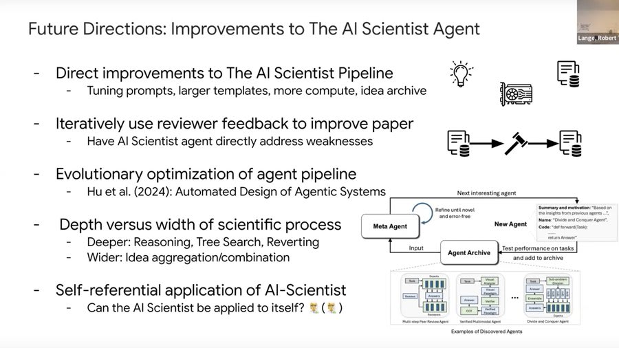 Prototype of LLM agents automating the full AI research workflow: The AI Scientist: Towards Fully Automated Open-Ended Scientific Discovery.