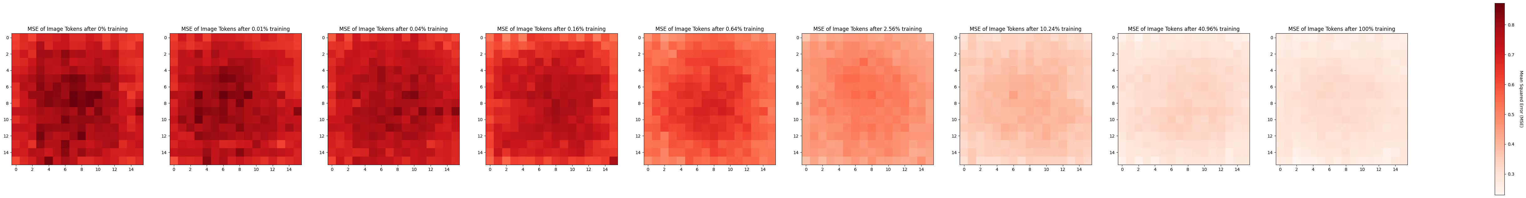 All layers were trained across all 257 image patches. Below we provide plots demonstrating the reconstruction MSE for each token (other than the CLS token) as training progressed. It seems that throughout training the outer tokens are easier to reconstruct than those in the middle, presumably because these tokens capture more important information (i.e. foreground objects) and are therefore more information rich.