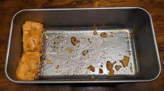 Since coming across apple cider syrup last year I've been trying to figure out what sort of things to make with it. Cider donuts are traditional, but I'm not that much of a fan. Mixing it into whipped cream works very well, and makes a good sweet and tart filling or topping for baked goods. I've experimented with muffins, using it for a combination of the liquid, the sugar, the flavoring, and the acid for the leavening, but I haven't ended up with anything I'm happy with yet. But a few days ago I made some apple baklava that's my favorite yet!