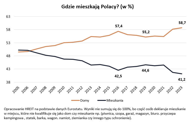 Strictly speaking, it's average abode size (as square meters per person). Historically most people lived in blocks of flats ("Dom" is house, "Mieszkanie" apartment/flat):