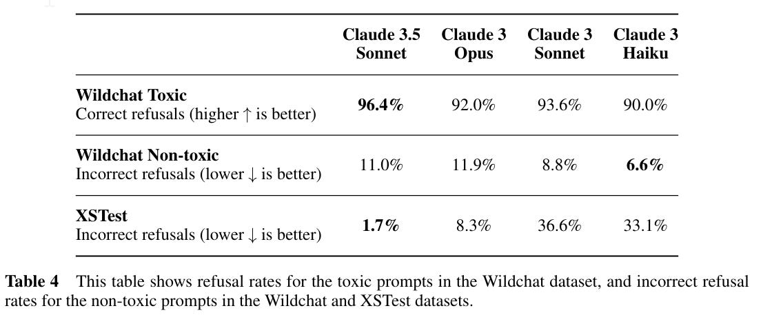 The refusal rates are improvements over Opus in both directions, in terms of matching intended behavior.