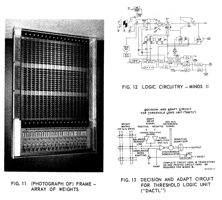 And interesting that you mentioned magnetic cores. The MINOS II machine built in 1962 by the Stanford Research Institute group had precisely a grid of magnetic core memory. Can't they have scaled it up and built some extra circuitry to allow backpropagation?