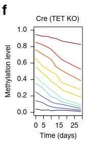 The dynamic steady state model would instead say: even if a few of the 1001 methyl groups flip to the "wrong" state at some point, they'll just be flipped back soon after. Something is pushing the methyls back toward the consensus value. That means there's no mechanism for the memory to slowly "decay"; a state change would only happen if some big shock makes a whole bunch of the methyl groups flip at the same time. So under the dynamic model, there's no gradual loss of memory; there's just a(n exponentially small under normal conditions) probability of a sudden discrete transition.