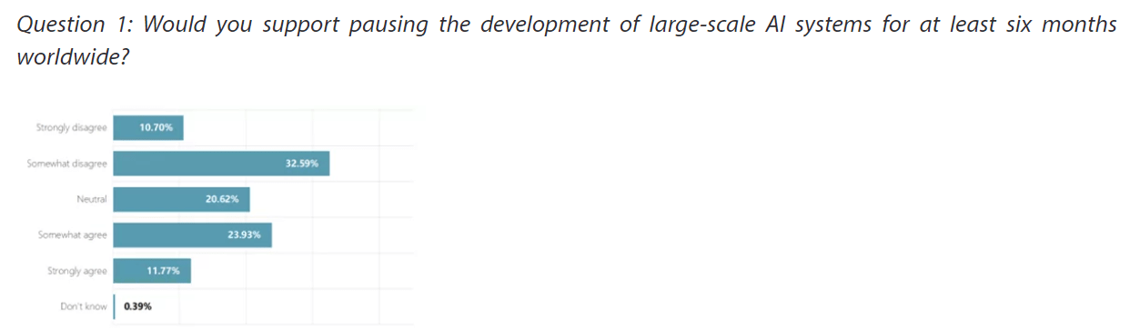 That’s 35% support, 21% neutral, 43% opposition. That’s well underwater, but not as far underwater as one would think from the way people treat advocates of a pause.